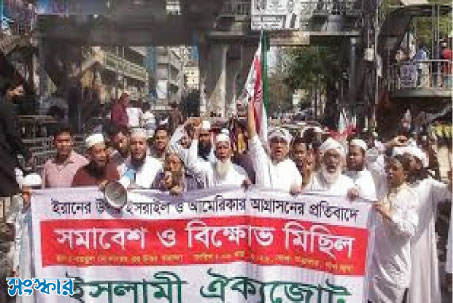 সংস্কার ৭ মার্চ ২০২৬: ইরানের ওপর মার্কিন ও ইসরাইলি সামরিক আগ্রাসন বন্ধের দাবি জানিয়েছে ইসলামী ঐক্যজোট। সংগঠনটির নেতারা বলেছেন, অবিলম্বে এই হামলা বন্ধ না হলে মধ্যপ্রাচ্যের অন্যান্য মুসলিম দেশে সংঘাত ছড়িয়ে পড়তে পারে এবং এতে তৃতীয় বিশ্বযুদ্ধের ঝুঁকি তৈরি হতে পারে। গতকাল জুমার নামাজের পর রাজধানীর বায়তুল মোকাররম মসজিদের উত্তর গেটে ইসলামী ঐক্যজোটের উদ্যোগে আয়োজিত বিক্ষোভ সমাবেশে বক্তারা এসব কথা বলেন। তারা বলেন, গোটা বিশ্বের স্বার্থেই ইরানের ওপর মার্কিন-ইসরাইলি আগ্রাসন বন্ধ করা প্রয়োজন এবং এ বিষয়ে জাতিসংঘকে জরুরি উদ্যোগ নিতে হবে।