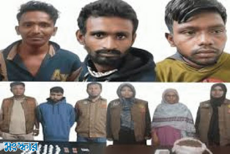 গ্রেপ্তার ব্যক্তিরা হলেন— মাদারীপুরের রাজৈর থানার নারার কান্দি গ্রামের মো. তাইজুল মোল্লার ছেলে মো. আরমান মোল্লা (২৯), চন্দ্রিমা থানার হাজরাপুকুর (ডাবতলা) এলাকার মো. এরশাদের ছেলে মো. আলমগীর ওরফে শাহীন (৩০), রাজপাড়া থানার তেরখাদিয়া গ্রামের শ্রী পরান রায়ের ছেলে শ্রী রিপন রায় (২০), রাজপাড়া থানার চন্ডিপুর গ্রামের মৃত শামসুদ্দিনের ছেলে মো. সাদিকুল ইসলাম (৪০) এবং বেলপুকুর থানার ভরুয়াপাড়া গ্রামের মৃত আসলামের মেয়ে মোসা. সুখী বেগম (৫৪)। তারা সবাই বর্তমানে রাজশাহী মহানগরীতে বসবাস করছেন।