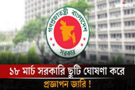সংস্কার ৮ মার্চ ২০২৬: আসন্ন শবে কদর ও ঈদুল ফিতর উপলক্ষে সরকারি ছুটি একদিন বাড়িয়ে ১৮ মার্চ ২০২৬ (বুধবার) অতিরিক্ত ছুটি ঘোষণা করেছে সরকার। এ বিষয়ে জনপ্রশাসন মন্ত্রণালয় থেকে প্রজ্ঞাপন জারি করা হয়েছে। রোববার ৮ মার্চ ২০২৬ প্রকাশিত এ পরিপত্রে জনপ্রশাসন মন্ত্রণালয়ের সহকারী সচিব এ বি এম আবু বাকার ছিদ্দিক স্বাক্ষর করেন। এতে বলা হয়েছে, পূর্বনির্ধারিত ছুটির মধ্যবর্তী দিন হওয়ায় ১৮ মার্চ নির্বাহী আদেশে এক দিনের সরকারি ছুটি ঘোষণা করা হয়েছে।