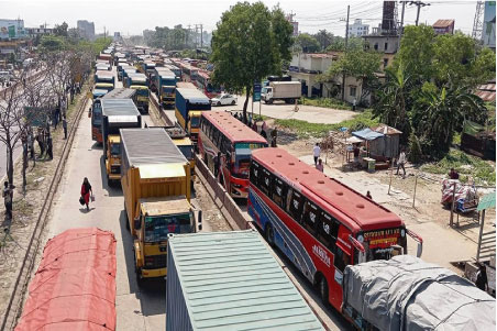জানা যায়, কুমিল্লা ইপিজেডে নাসা গ্রুপের শতাধিক শ্রমিক বকেয়া বেতন-ভাতার দাবিতে মহাসড়কে অবস্থান নেন। এতে মহাসড়কের দুই লেনেই যান চলাচল বন্ধ হয়ে পড়ে এবং মিয়ার বাজার থেকে মাধাইয়া পর্যন্ত প্রায় ৩০ কিলোমিটার এলাকায় তীব্র যানজট দেখা দেয়।